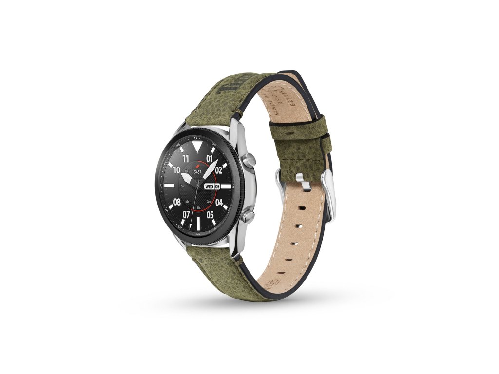 Olivově zelenou kůži s efektem stárnutí doplňuje vyražený nápis Timberland, který podtrhuje prémiový vzhled a autentický styl značky. Řemínek je odolný, pohodlný a díky šířce 22 mm má univerzální využití pro různé modely hodinek. Vyroben je udržitelným způsobem v souladu se standardy Leather Working Group.