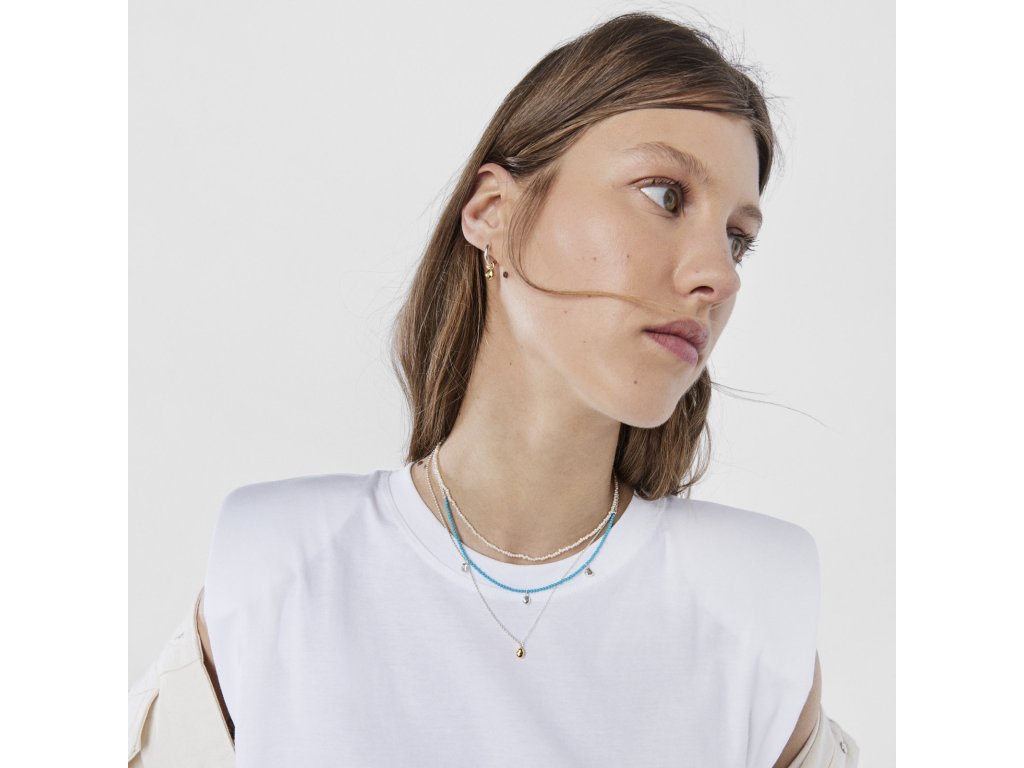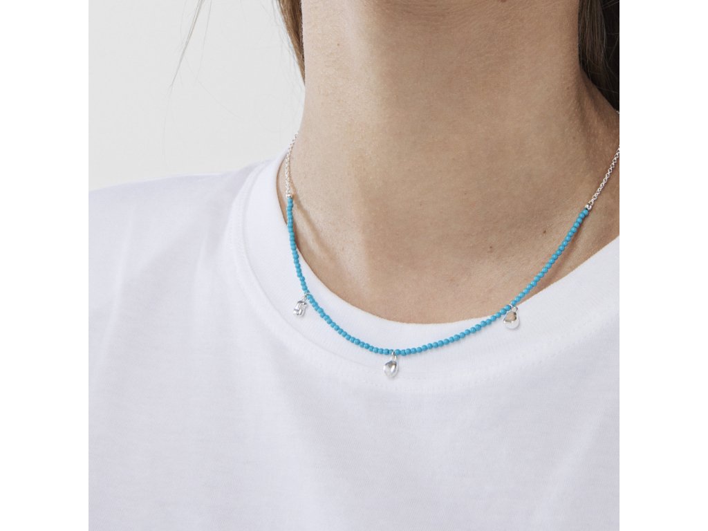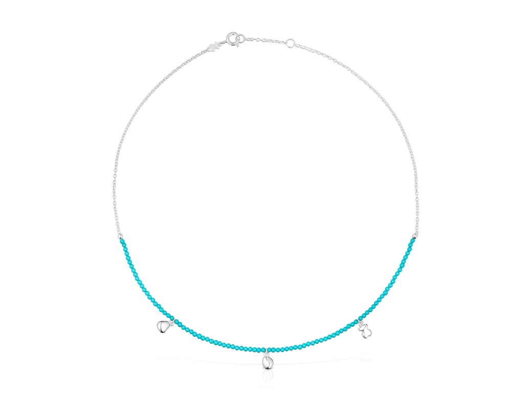 Náhrdelník TOUS Joy Bits z mincovního stříbra a hladkých kuliček z barveného kalcitu s medvídkem a organicky tvarovanými motivy z mincovního stříbra. Délka: 45 cm.Doplňkové parametry