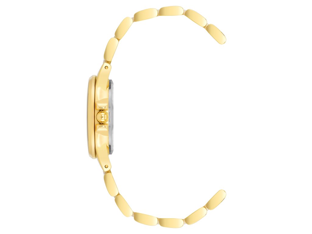 Hodinky majú precízne spracovaný strojček zložený z mosadzných článkov v zlatej a bielej farbe. Okrúhle puzdro v elegantnej zlatej farbe harmonicky dopĺňa biely ciferník s priemerom 28 mm, ktorý zdobia jemné zlaté indexy, elegantné ručičky a kryštál.