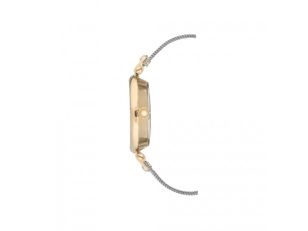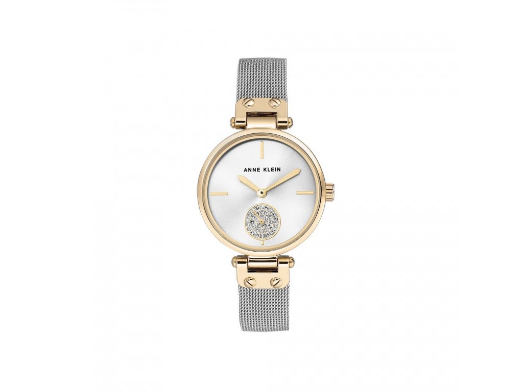Slušné hodinky s kovovým remienkom a detailmi v zlatej a striebornej farbe. Značka Anne Klein, nesúca meno známej americkej vizionárky, prináša všetkým ženám možnosť sebavyjadrenia pomocou niečoho tak praktického, ako sú hodinky. Ciferník v tónoch bielej a striebornej s pozlátenými indexmi v podobe paličiek rozbíjajú žiarivé kryštály. Celok dopĺňa sivý remienok z kombinácie kovu a nehrdzavejúcej ocele. Hodinky sú chránené minerálnym sklíčkom a 34 mm pozláteným puzdrom. Jednoduché zapínanie zabezpečuje klenotnícka pracka.Dodatočné parametre