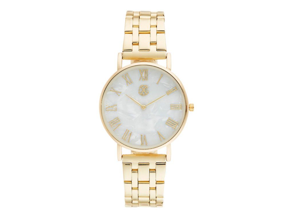 Kovový ťah v zlatej farbe ladí s okrúhlym puzdrom, ktoré podčiarkuje celkový čistý a moderný dizajn hodiniek. Perleťový ciferník dotvára harmonický a univerzálny vzhľad, vďaka ktorému je tento model ideálnou voľbou pre ženy preferujúce jednoduchú, ale pôsobivú eleganciu. Model je vybavený presným strojčekom Quartz a chránený minerálnym sklom.