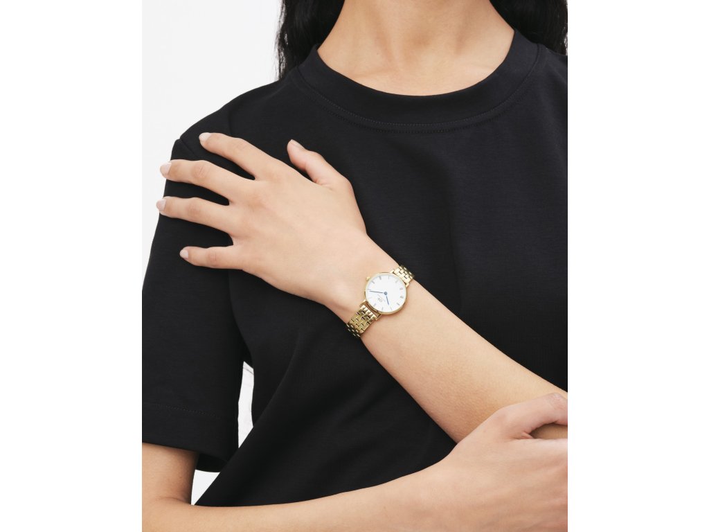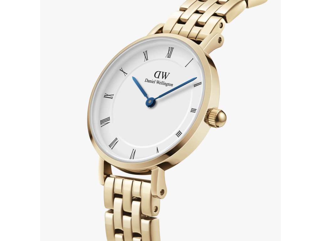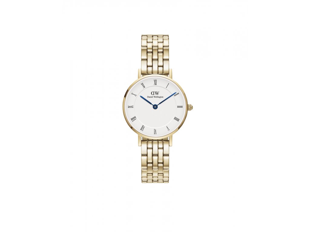 Dámske zlaté hodinky Petite Roman Numerals 5-Link Gold od Daniel Wellington kombinujú elegantný vintage vzhľad s moderným štýlom.