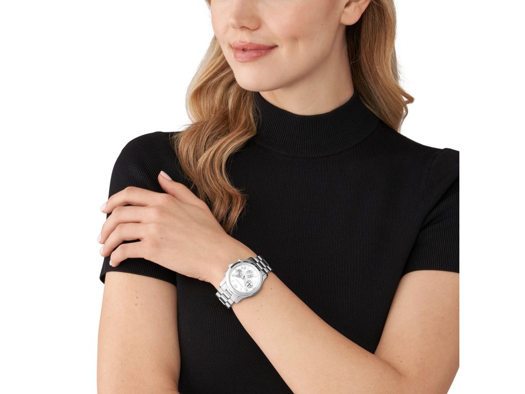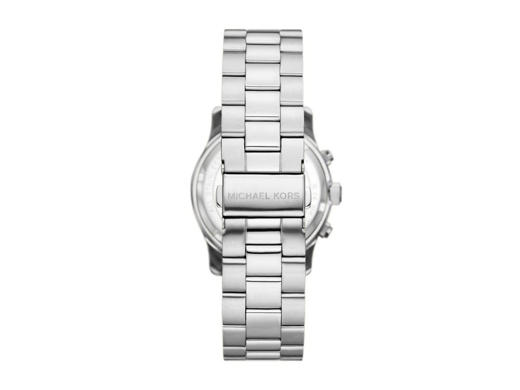 Klasické chronografy s nádychom módnej elegancie sú dámske hodinky Runaway od Michael Kors v striebornej farbe.
