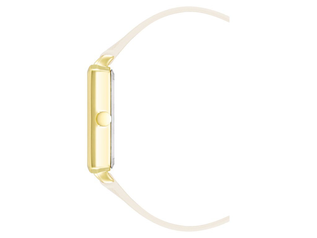 Žltý číselník s plastickým vzorom a výraznými číslicami 12 a 6 zaujme na prvý pohľad. Hranaté puzdro v zlatej farbe dodáva hodinkám výraz a originalitu, zatiaľ čo jemný krémový remienok zo syntetickej kože poskytuje pohodlie pri nosení.