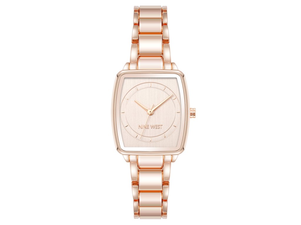 Dámske hodinky od značky Nine West okúzlia harmonickým vzhľadom v kompletnom ružovozlatom tóne. Hranaté puzdro dodáva modelu moderný a módny charakter, zatiaľ čo ružovozlatý ciferník podčiarkuje jemnú, ženskú estetiku. Hodinky sú ideálne pre ženy, ktoré hľadajú elegantný doplnok zladený do jedného luxusne pôsobiaceho odtieňa.