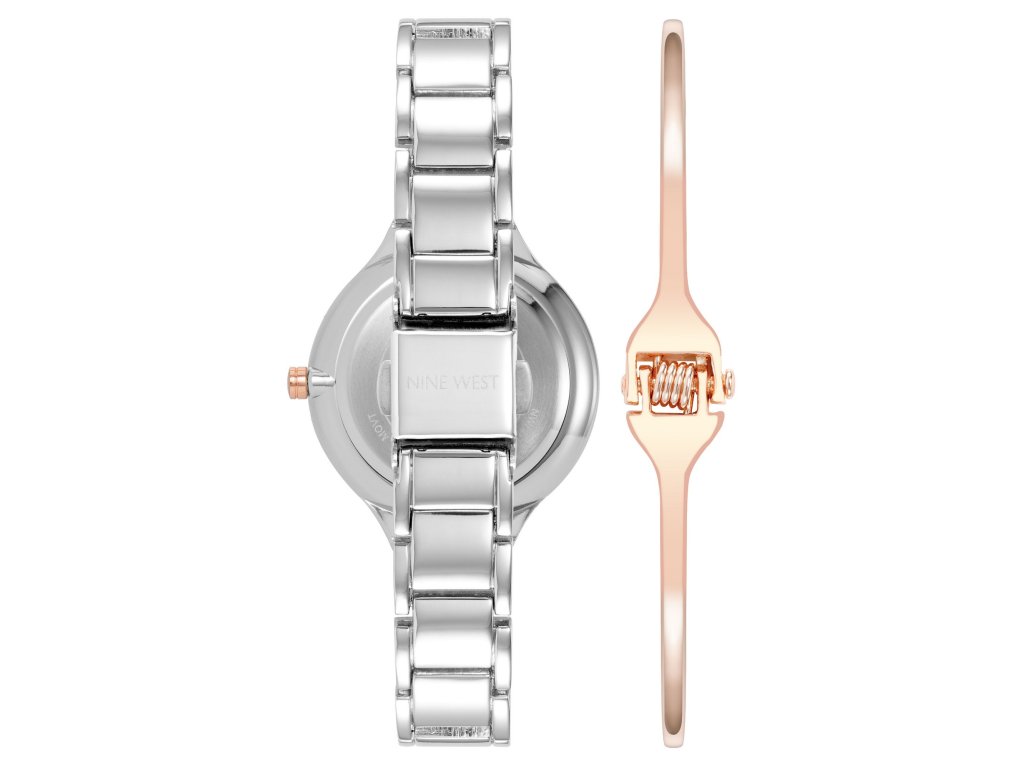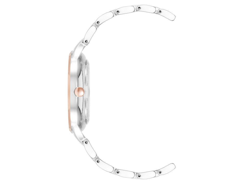 Dámska darčeková súprava hodiniek a náramku. Strieborné hodinky majú elegantný trblietavý ciferník. Číselník s líniovými indexmi vo farbe ružového zlata. Náramok z ružového zlata tvorí s hodinkami ideálnu kombináciu. Ten správny darček pre vašich blízkych!Dodatočné parametre