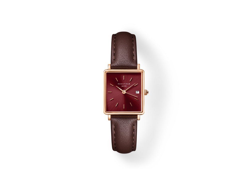 Rosefield Boxy XS Burgundy Sunray sú hodinky, ktoré priťahujú pozornosť svojou farebnosťou, eleganciou i ľahko vintage atmosférou.