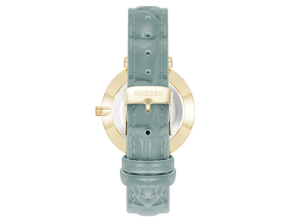 Model je vybavený spoľahlivým strojčekom Quartz a chránený minerálnym sklom. Remienok z vegánskej kože vo svetlomodrej farbe je príjemný na nosenie a ladí s okrúhlym puzdrom v zlatej farbe ozdobeným drobnými kryštálmi. Jemný ciferník s farebným prechodom do béžových tónov dodáva hodinkám výnimočný vizuálny efekt, ktorý vynikne na každom zápästí.