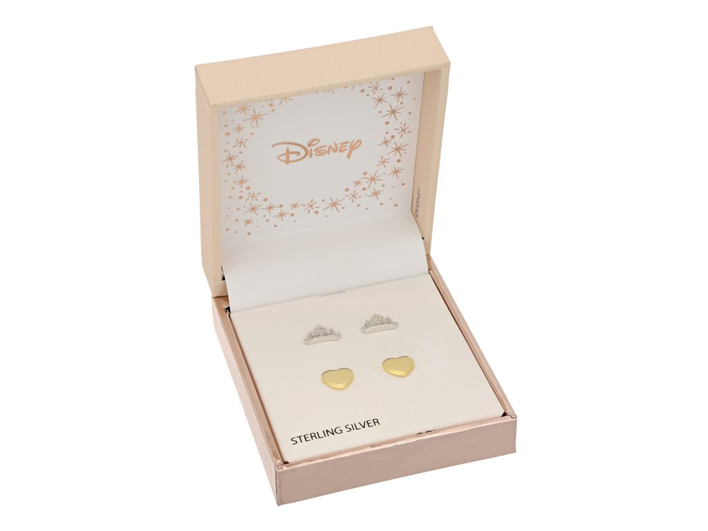 Disney set detských náušníc srdca a korunky strieborný pozlátený SS00001TZWL.CS