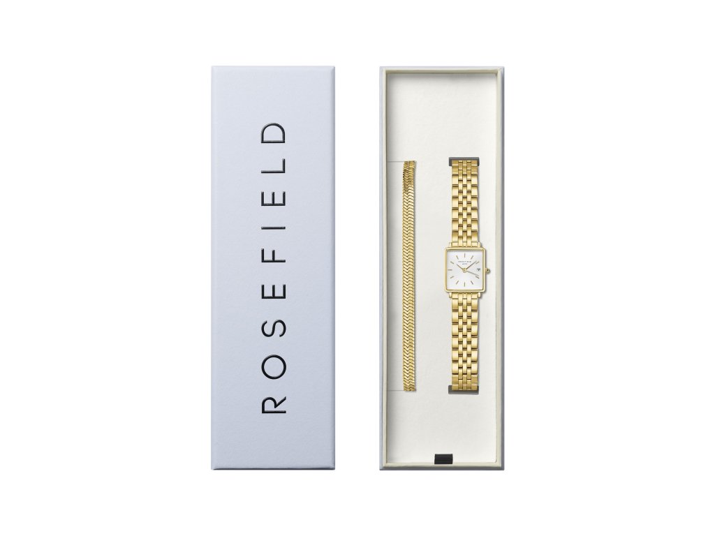 Darčeková súprava Rosefield The Boxy XS hodiniek a Snake náramku je perfektnou voľbou pre ženy, ktoré milujú čistý dizajn, nadčasovú eleganciu a decentný luxus.