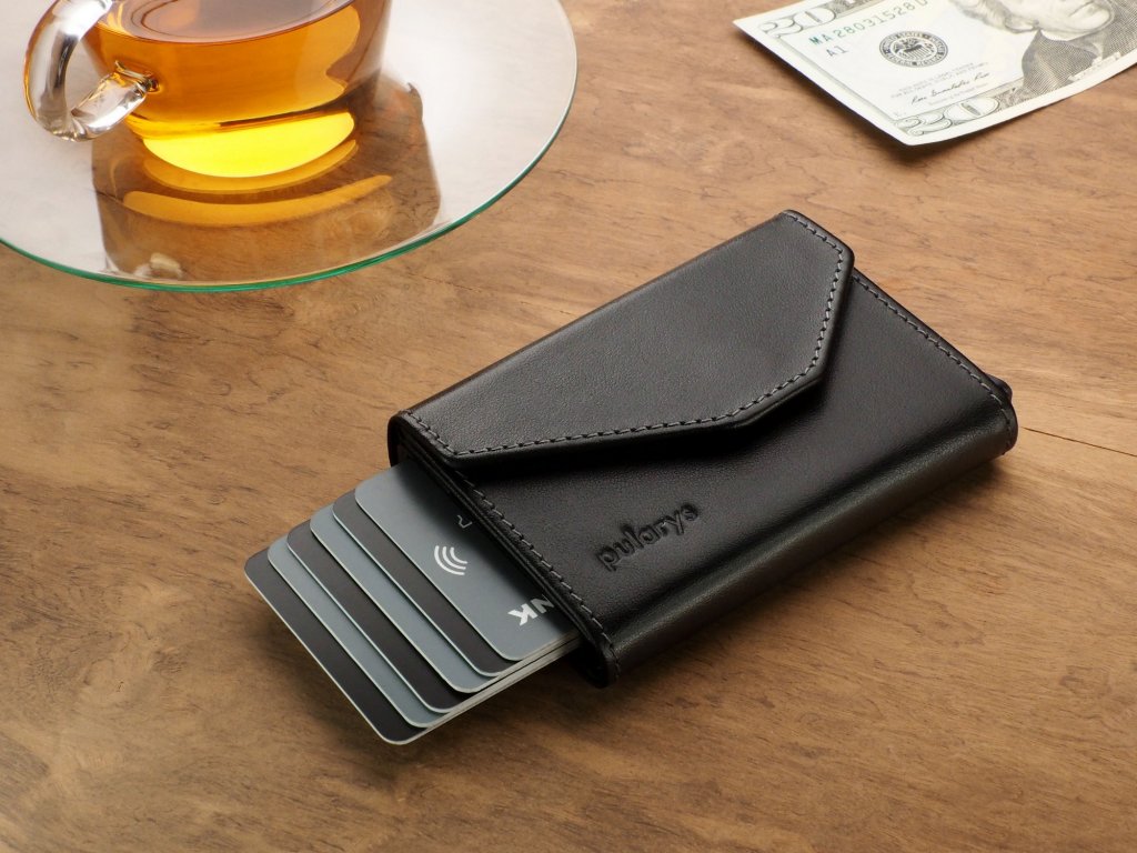 Pojme až 7 kariet a má aj vrecká na bankovky a mince. Peňaženka má špeciálny mechanizmus postupného vysúvania, vďaka ktorému máte požadovanú kartu okamžite po ruke.