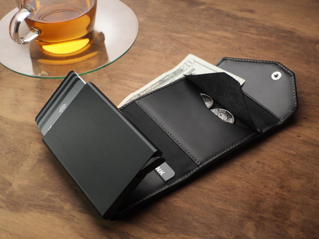 Peňaženka chráni peniaze a citlivé údaje pomocou technológie RFID, ktorá slúži ako ochrana proti neoprávnenému skenovaniu čipových kariet.
