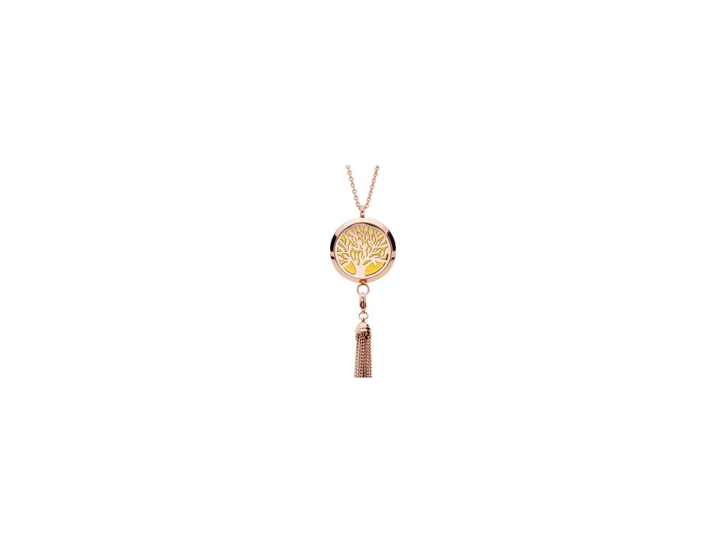 Náhrdelník z ružového zlata s vôňou vášho obľúbeného parfumu. Farba, materiál, tvar... typické vlastnosti náhrdelníka, ktorými sa zaoberá každá žena. Ale čo vôňa? Predstavujeme šperk v bohémskom štýle s vonnými tónmi, ktoré si preň vyberiete. Medailón obsahuje látkový vankúšik, ktorý ľahko absorbuje parfum alebo esenciálny olej. Farbu vankúša môžete ľubovoľne meniť podľa nálady a oblečenia. Jemný motív stromu života v kombinácii s vôňou podľa vášho výberu urobí z tohto kúsku váš obľúbený doplnok! Šperk je skvelý aj ako darček - stačí na vankúš nastriekať svoju najobľúbenejšiu vôňu a váš blízky bude mať pocit, že ste vždy pri ňom.Dodatočné parametre