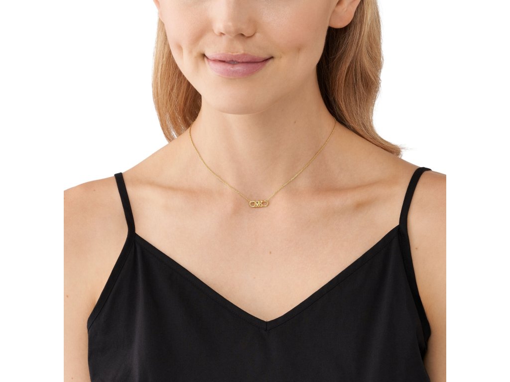 Jemná elegancia sa skrýva v tomto dámskom náhrdelníku z Michael Kors. Jednoduchý dizajn v kombinácii so zlatým pokovovaním očarí každú ženu, ktorá oceňuje jemnú eleganciu. Náhrdelník je kvalitný doplnok, ktorý sa ľahko kombinuje s inými šperkami.