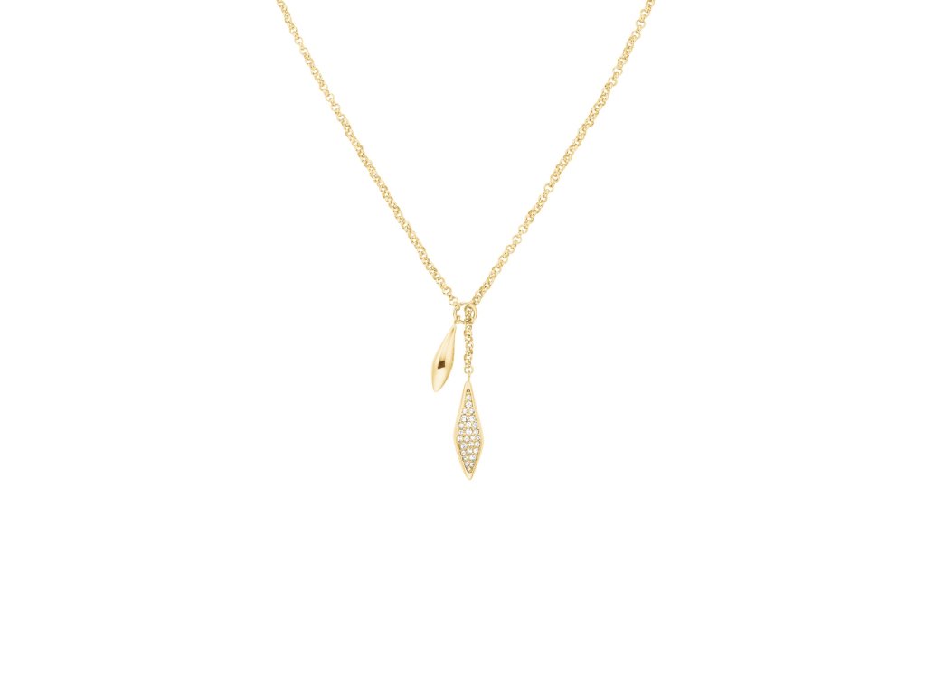 Elegantný, nežný a pútavý - dámsky náhrdelník Rosefield Pave Lariat Necklace kombinuje jemnosť šperku s moderným výrazom lariatového štýlu. Tento model v pozlátenom prevedení prináša dve odlišné ozdoby, ktoré spoločne tvoria pôvabný a originálny celok.
