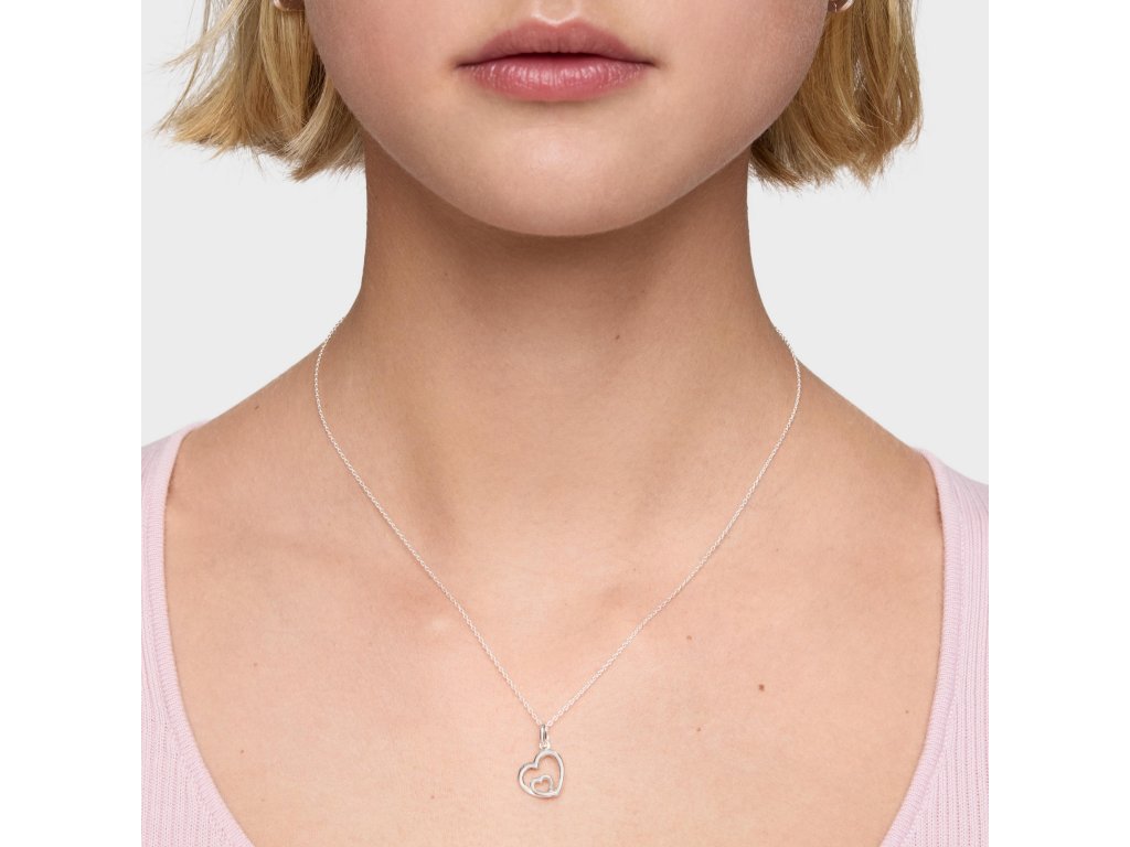 Motív dvoch sŕdc vytvára harmonický a romantický detail, ktorý pôsobí subtílne a zároveň osobito. Prívesok v tvare dvojitého srdca dodáva náhrdelníku nadčasový charakter a robí z neho ideálny doplnok pre každodenné nosenie aj ako darček.