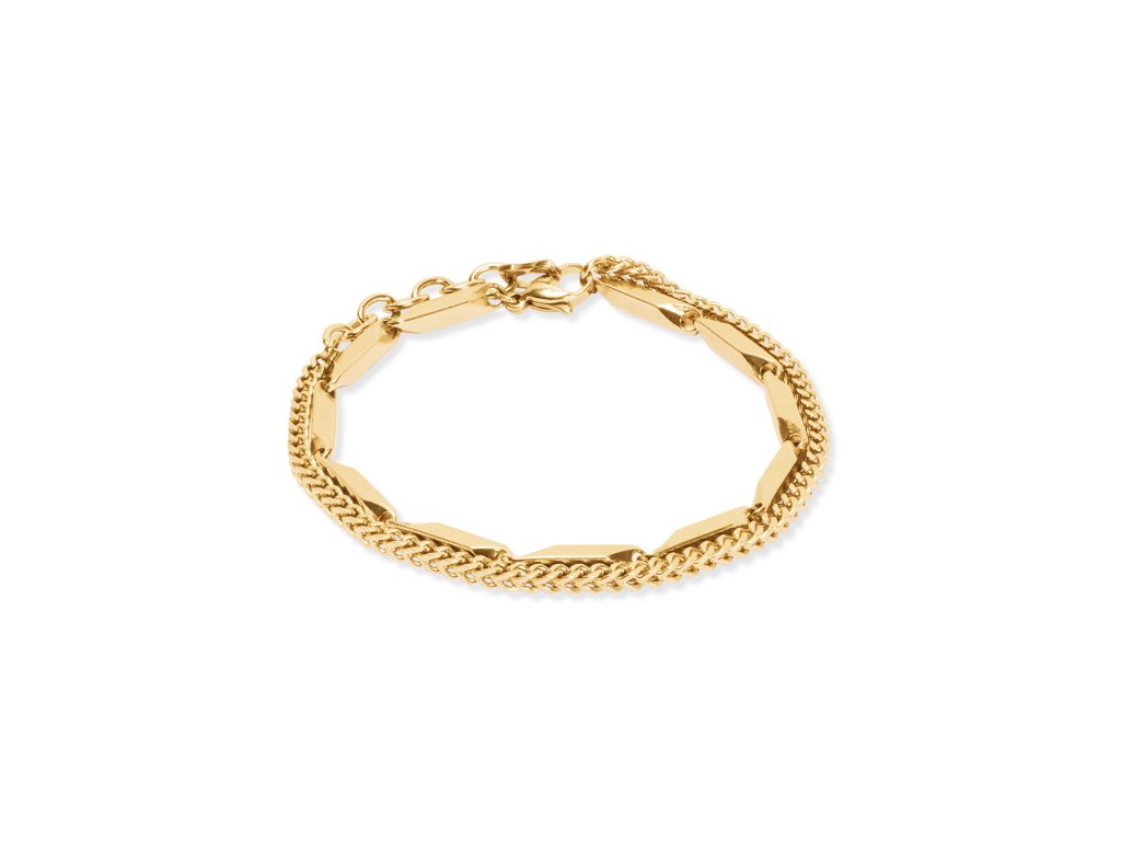 Náramok je vyrobený z nehrdzavejúcej ocele v zlatej farbe a ponúka nastaviteľnú dĺžku, ktorá zaisťuje pohodlné nosenie a prirodzené prispôsobenie zápästiu.
