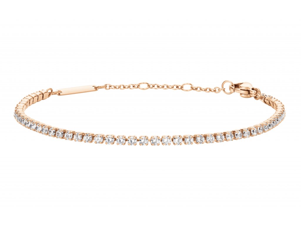 Náramok z drobných článkov z ružového zlata jemne zvýraznených kubickými zirkónmi podčiarkuje jemnosť a eleganciu svojej nositeľky.Dodatočné parametre