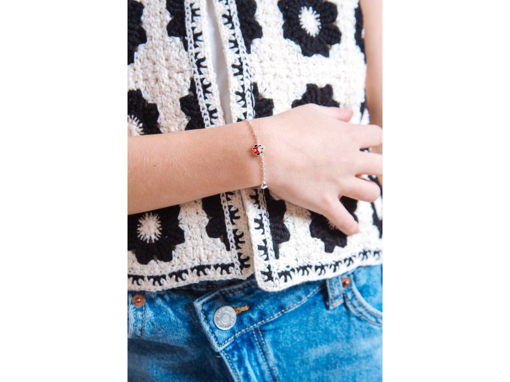 Čistota striebra je 925/1004 a hmotnosť náramku je 0,0014 kg. Vďaka nastaviteľnej dĺžke 12-14 cm sa ľahko prispôsobí zápästiu dieťaťa a pohodlne sa nosí. Ľahká konštrukcia a bezpečné zapínanie zaisťujú pohodlie počas celého dňa.