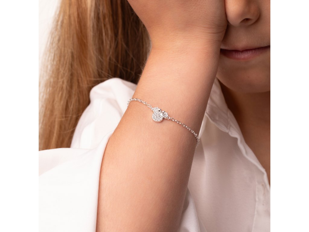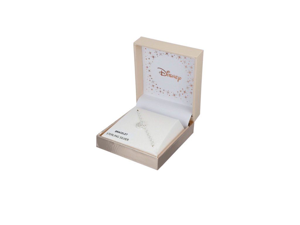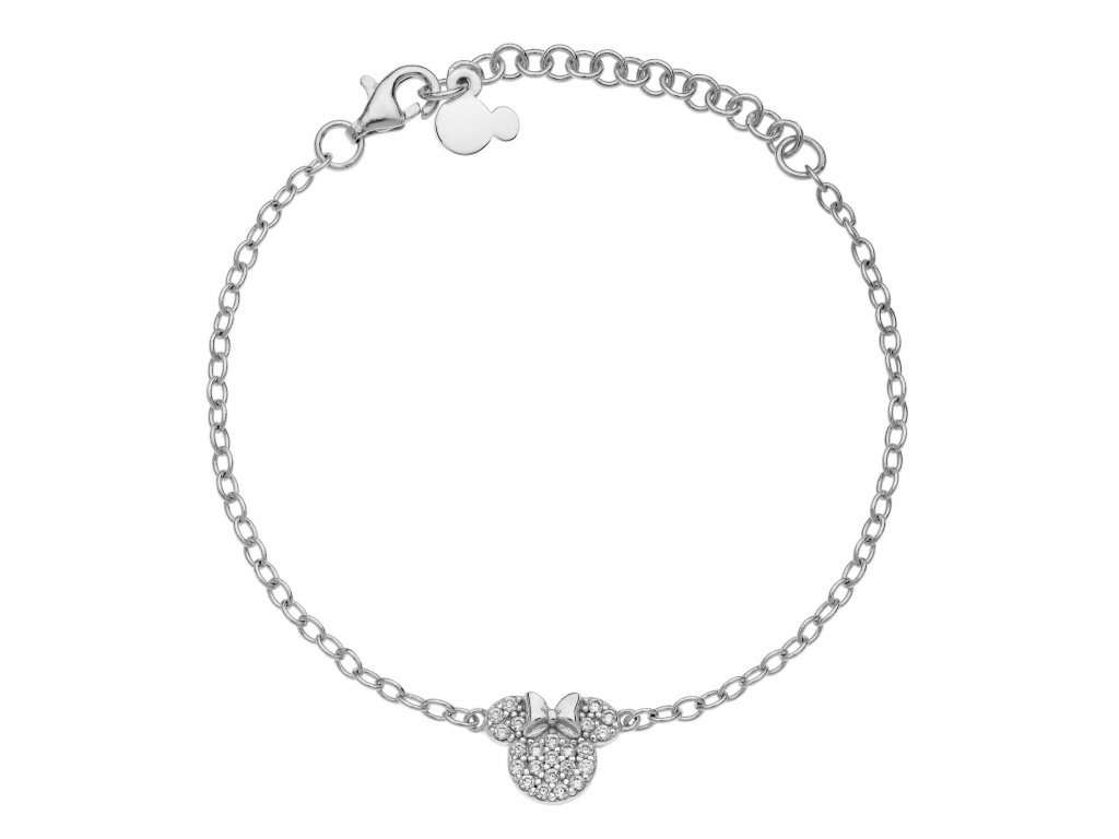 Náramok zdobený hlavou myšky Minnie z Disney je vyrobený z kvalitného striebra s lesklou povrchovou úpravou. Hlava myšky Minnie je zdobená čírymi kryštálmi, ktoré veľmi pekne zvýrazňujú celkový vzhľad náramku. Maximálna dĺžka náramku je 17 cm. Dodáva sa v štýlovej škatuli. Hmotnosť šperku je 3,2 g.