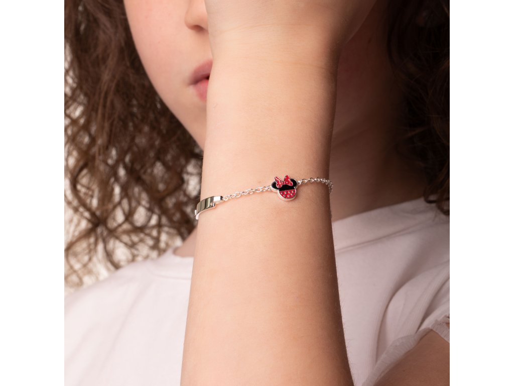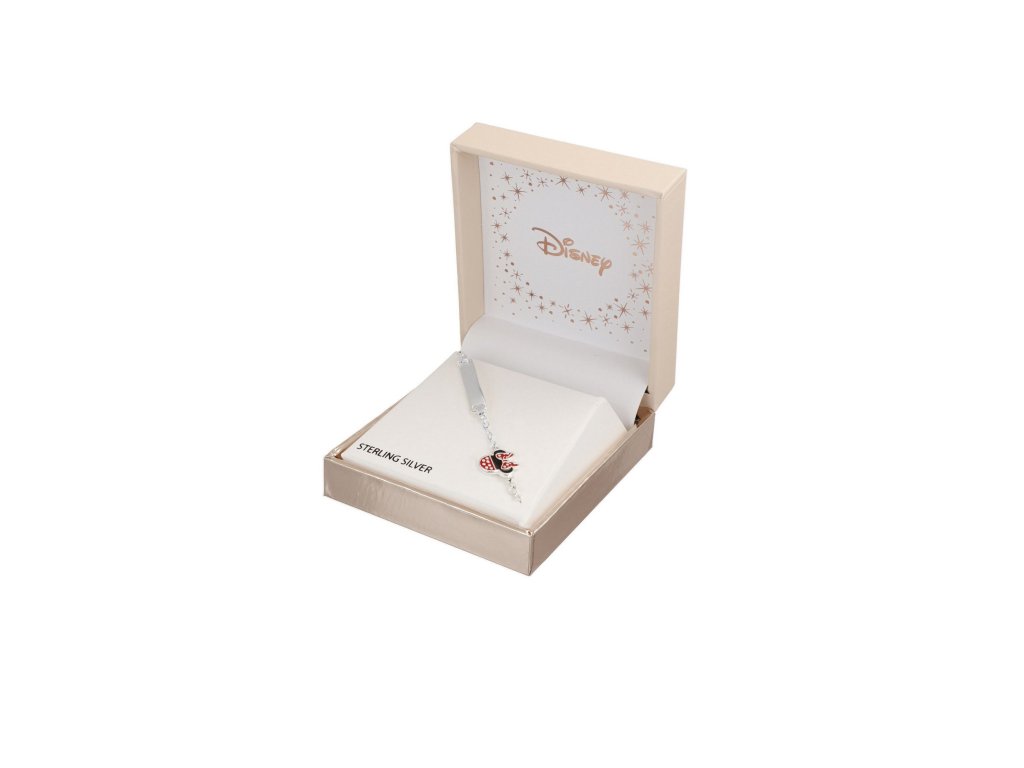 Náramok s príveskom v tvare hlavy obľúbenej myšky Minnie z Disney je vyrobený z kvalitného striebra s lesklou povrchovou úpravou. Prívesok myšky Minnie je potom zdobený červeným, čiernym a bielym smaltom, ktorý celému náramku dodáva hravý nádych. Maximálna dĺžka náramku je 17 cm. Dodáva sa v štýlovej škatuli. Hmotnosť šperku je 3,1 g.
