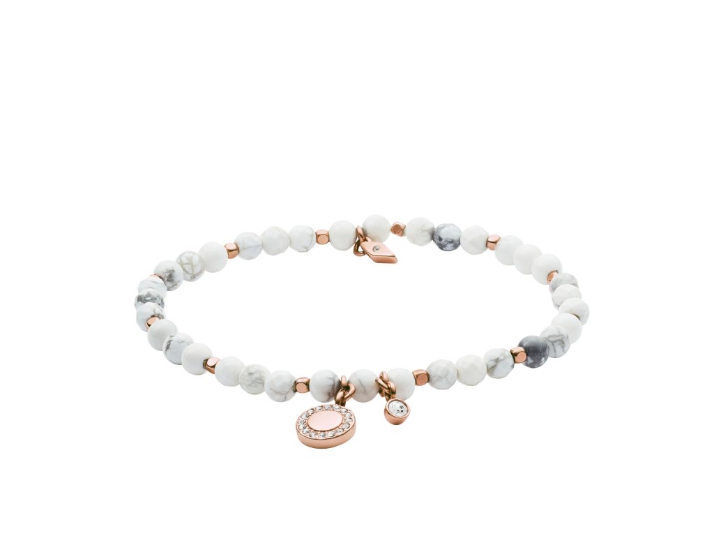 Jemný dámsky náramok s magnezitovými korálkami a príveskami v ružovom zlate z Fossil.