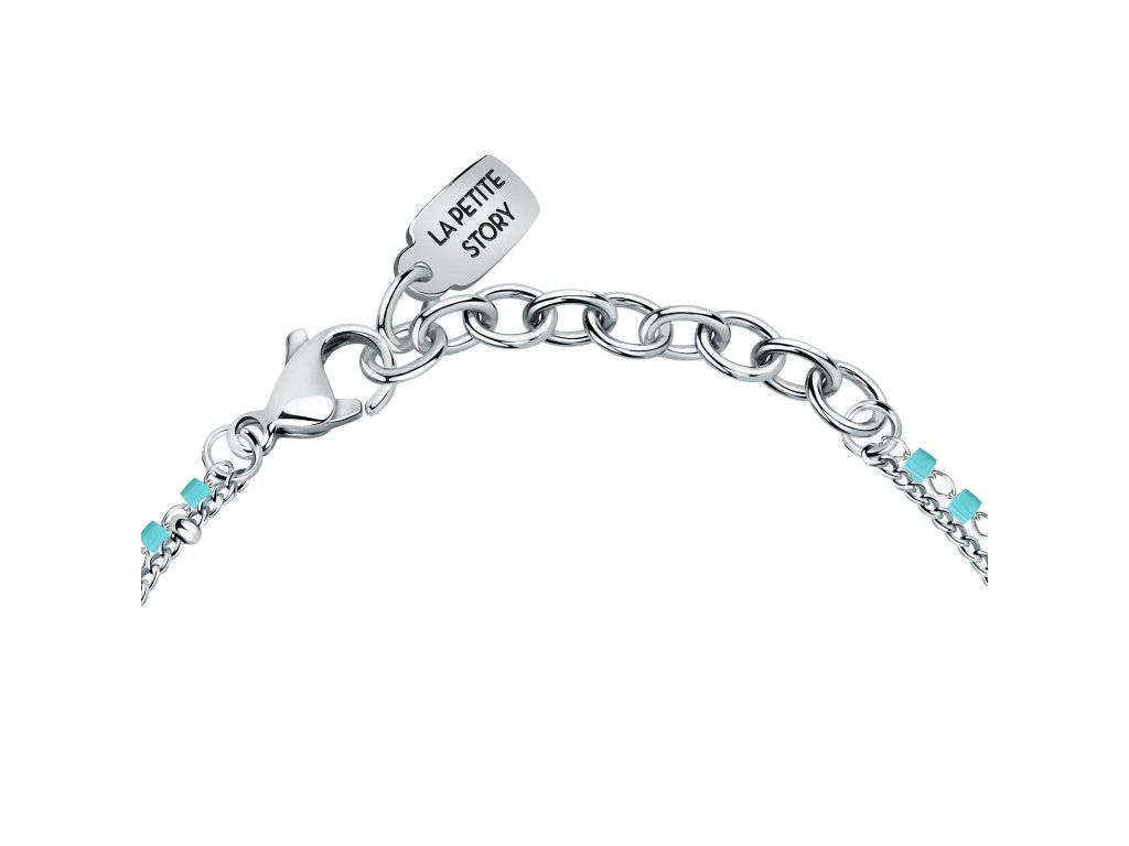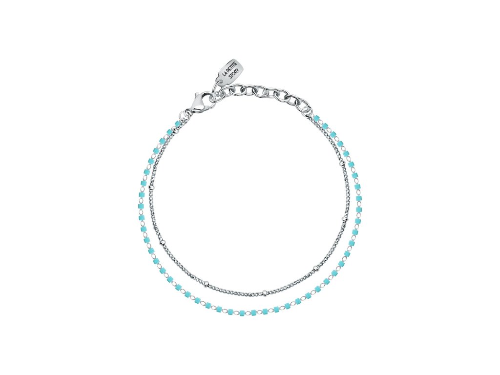 Ozdobte si zápästie dvojitým náramkom s tyrkysovými akcentmi od talianskej značky La Petite Story. Tento dámsky náramok sa skladá z dvoch častí, z ktorých jedna je zdobená tyrkysovými korálkami. Ideálna voľba pre ženy, ktoré uprednostňujú nenápadné, ale elegantné doplnky.