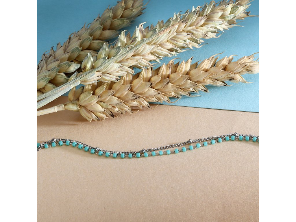 Je vyrobený z kvalitnej nehrdzavejúcej ocele a jeho nastaviteľná dĺžka zaručuje pohodlné nosenie a dokonalé prispôsobenie každému zápästiu. Strieborný odtieň v kombinácii s tyrkysovými korálkami dodáva šperku sofistikovaný a zároveň hravý charakter, ktorý je ideálny na každodenné nosenie.