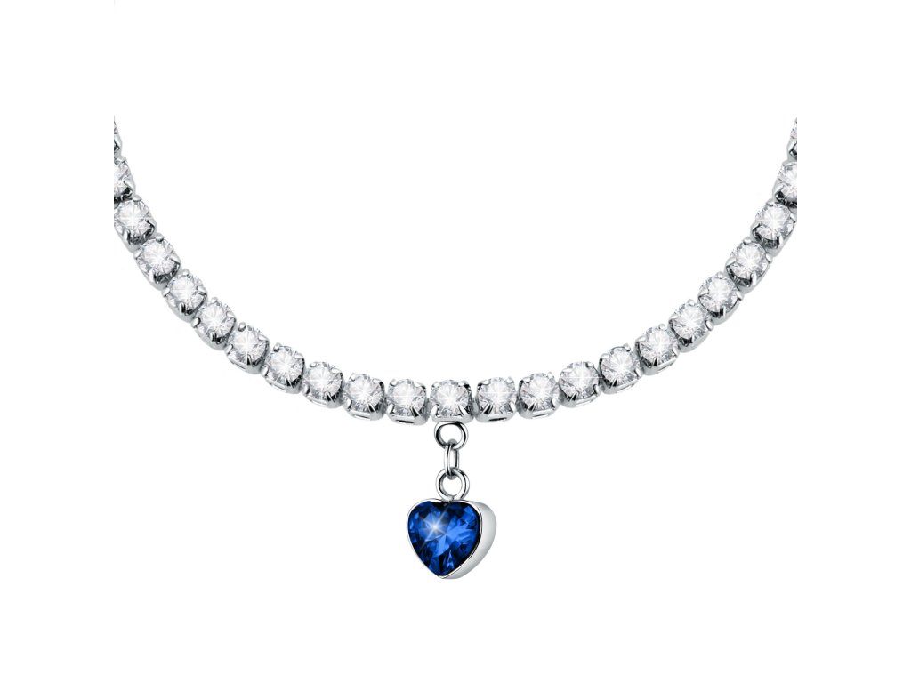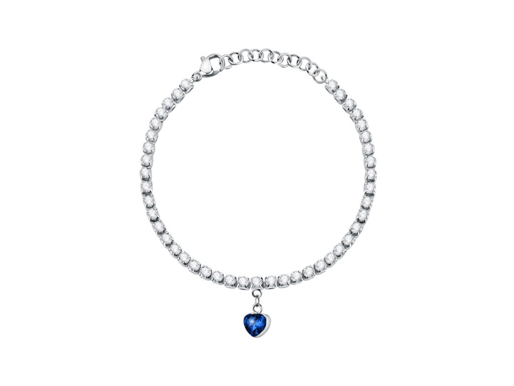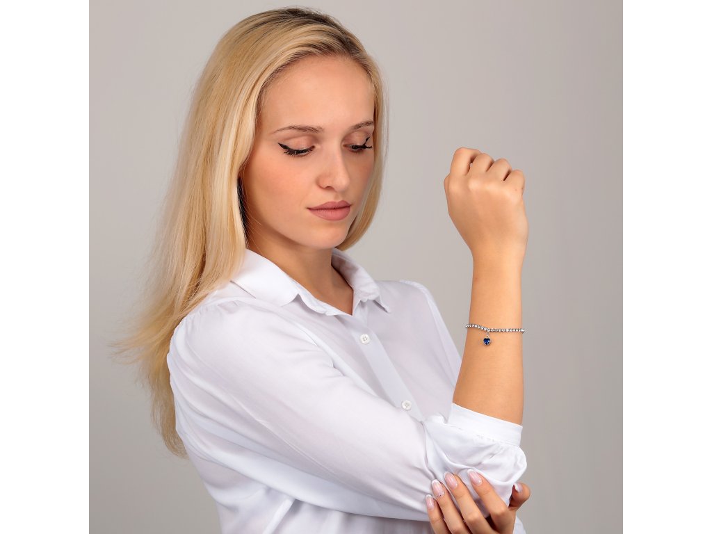 Tento dámsky náramok zdobený čírymi kryštálmi a srdiečkom z modrého zirkónu je ideálny pre ženy, ktoré majú rady trblietavé doplnky.