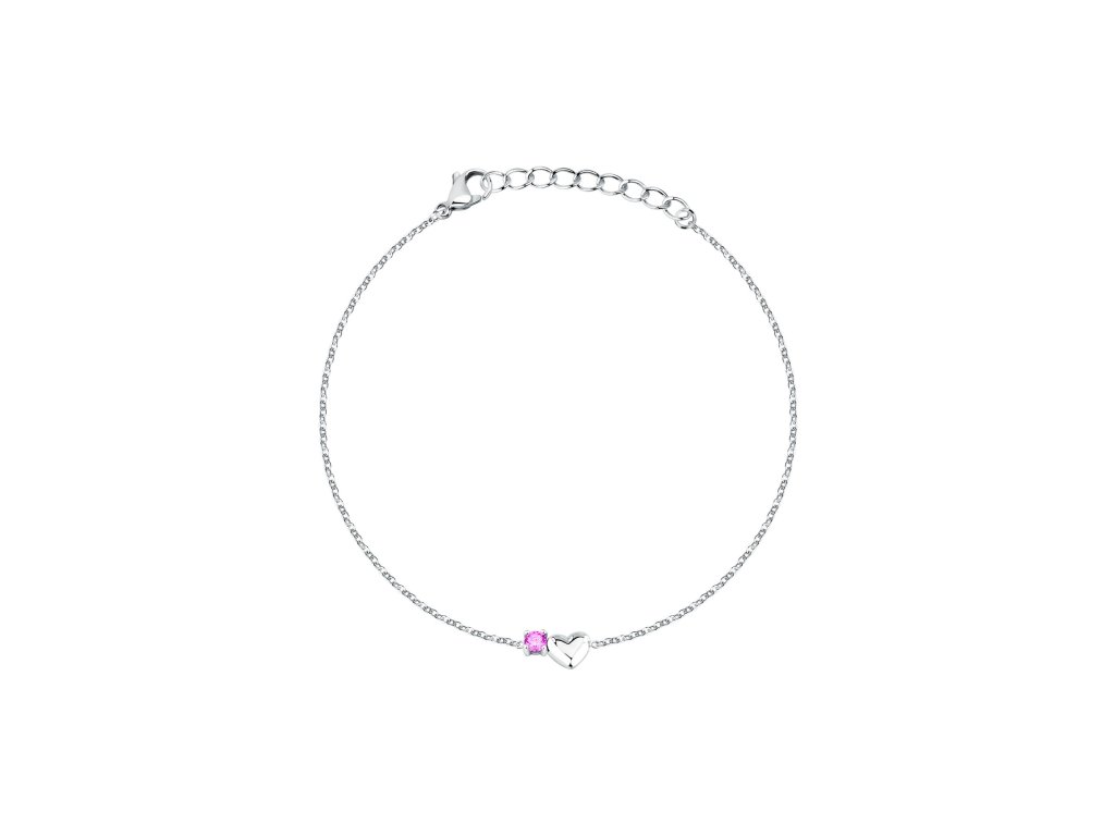 Tento dámsky náramok s drobným srdiečkom a zirkónovým kryštálom vo fialovo-ružovej farbe je elegantnou voľbou pre ženy, ktoré hľadajú jemnosť a štýl v jednom.