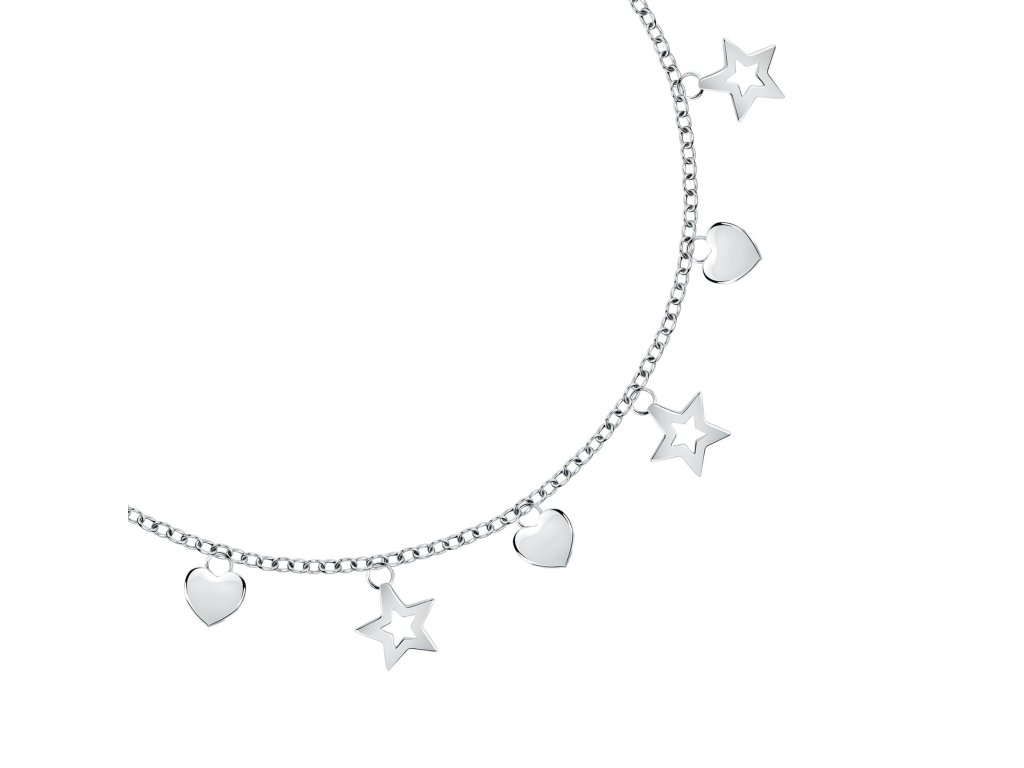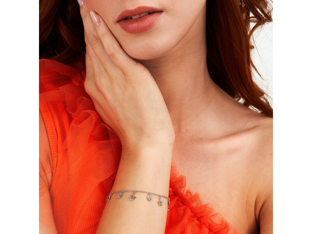 Dámsky náramok zdobený príveskami s hviezdičkami a srdiečkami je tou správnou voľbou pre ženy, ktoré majú rady hravé doplnky plné detailov.