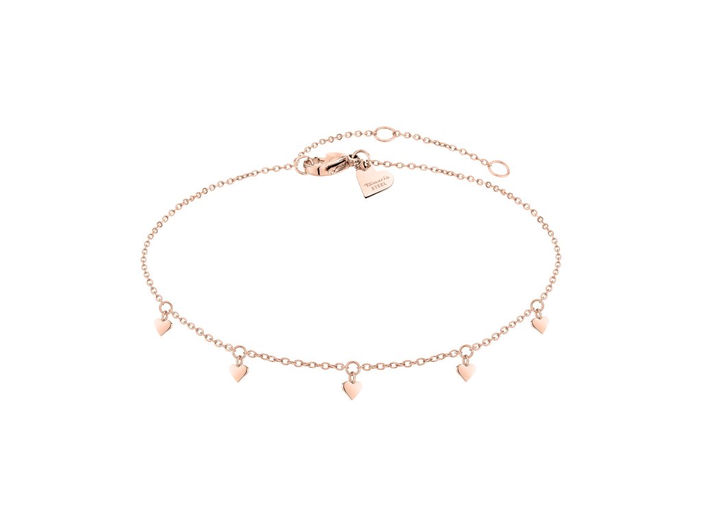Ružovo-zlatý náramok Tamaris s romantickými príveskami v tvare srdca je originálny ženský kúsok, ktorý pozdvihne každý váš outfit. Vďaka zapínaniu na karabínku si môžete dĺžku retiazky nastaviť tak, aby vám dokonale sedela podľa vašich predstáv. Maximálna dĺžka retiazky je 21 cm. Náramok je tiež ideálnym darčekom pre vášho blízkeho priateľa. Samozrejmosťou je originálna darčeková krabička Tamaris.Dodatočné parametre