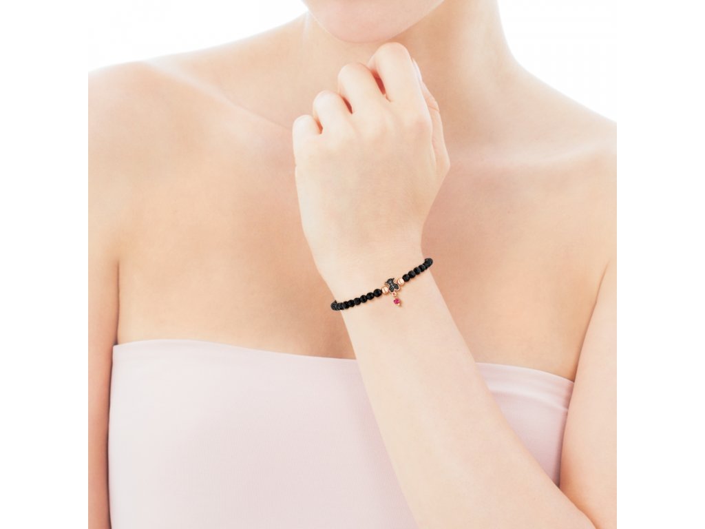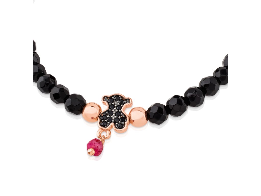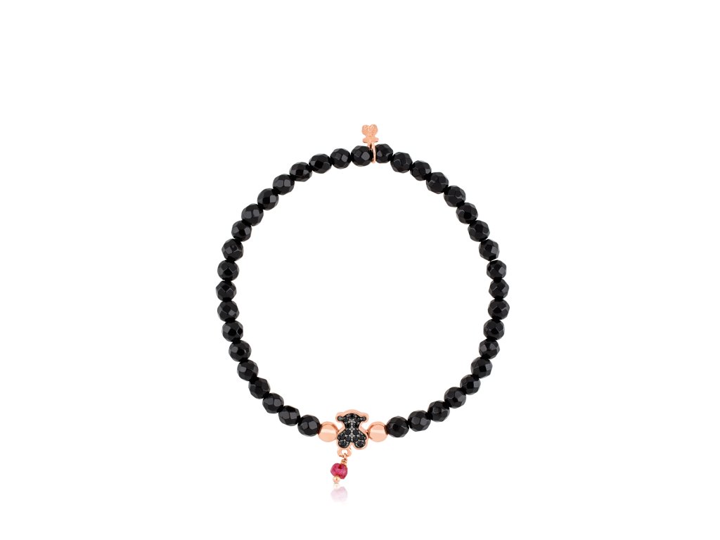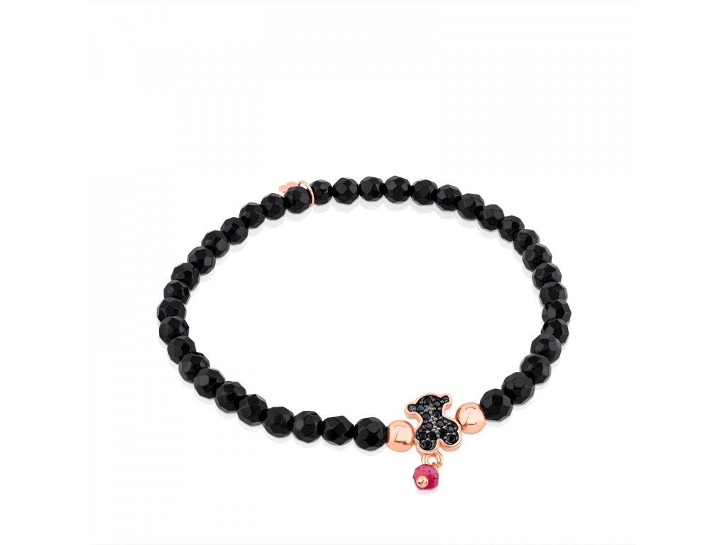 Náramok Tous Motiv z ružového striebra Vermeil a brúsených korálok z onyxu. Motív medvedíka so spinelmi. Dĺžka náramku: 16 cm. Silver Vermeil - vysokokvalitné striebro najvyššej rýdzosti 925/1000 pokryté vrstvou 18-karátového zlata.