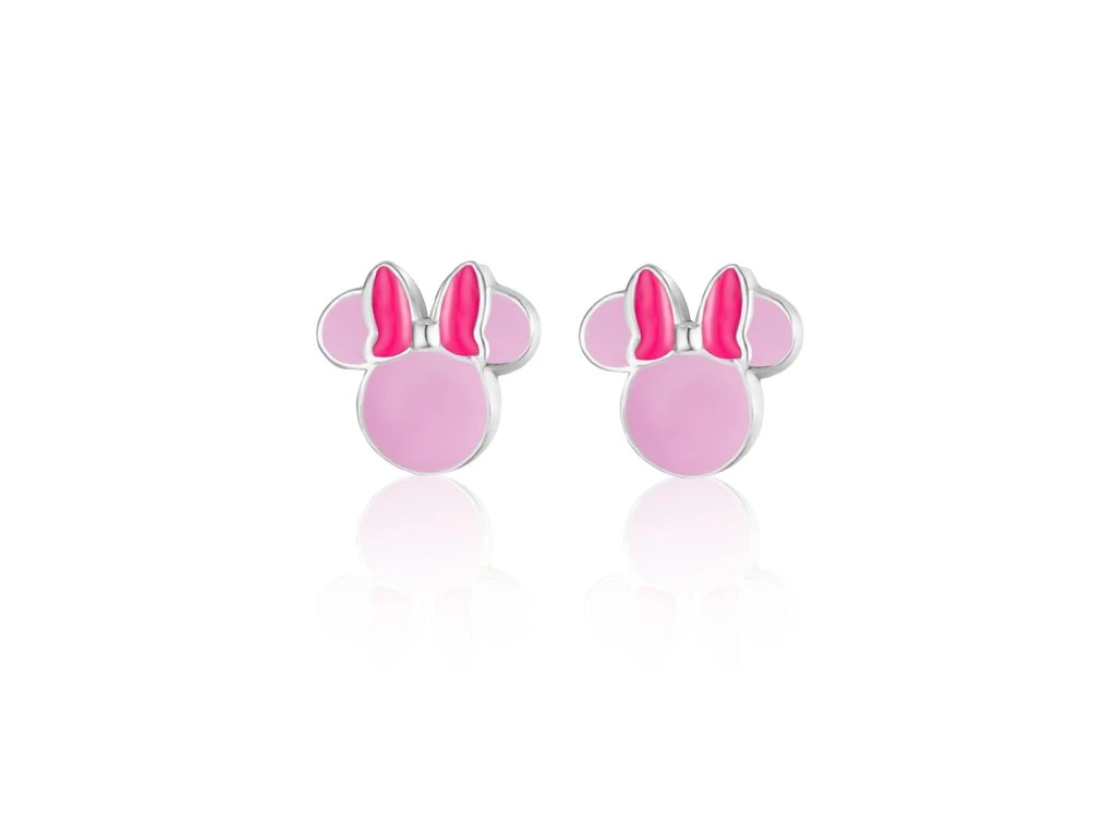 Tieto jemné náušnice sú vyrobené zo striebra 925 a zdobené precízne naneseným ružovým smaltom na mašličke a pastelovo ružovým smaltom na hlave Minnie. Smalt dodáva týmto náušniciam hravý a veselý vzhľad. Lesklý povrch zvýrazňuje detaily a dodáva náušniciam šmrnc. Bezpečné zapínanie na gombíky zaručuje pohodlné a spoľahlivé nosenie počas celého dňa.