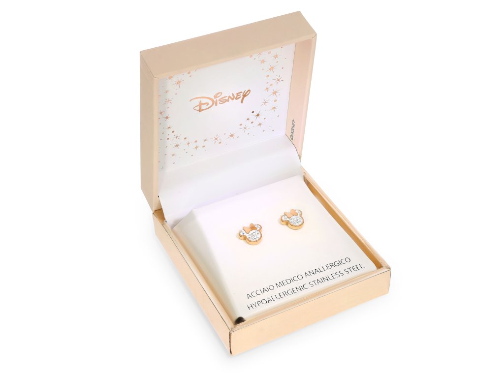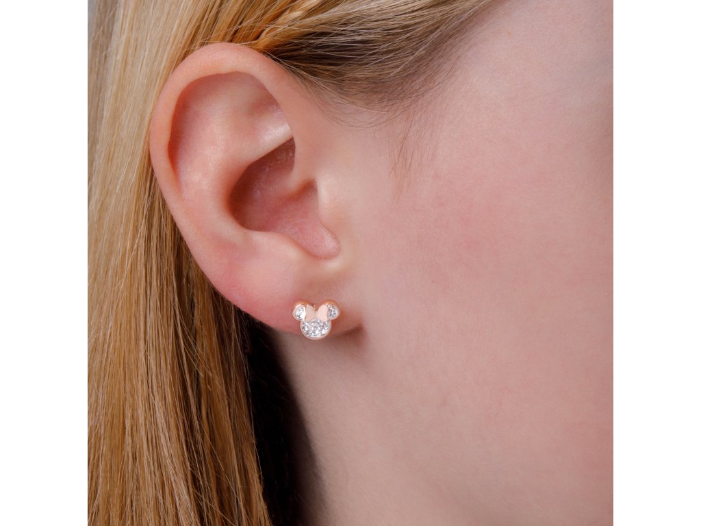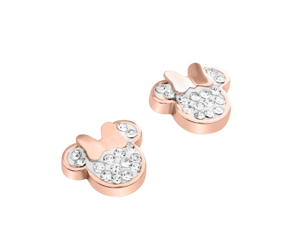 Očarujúce a žiarivé náušnice od Disney v ružovo-zlatom odtieni potešia všetky malé fanúšičky myšky Minnie.