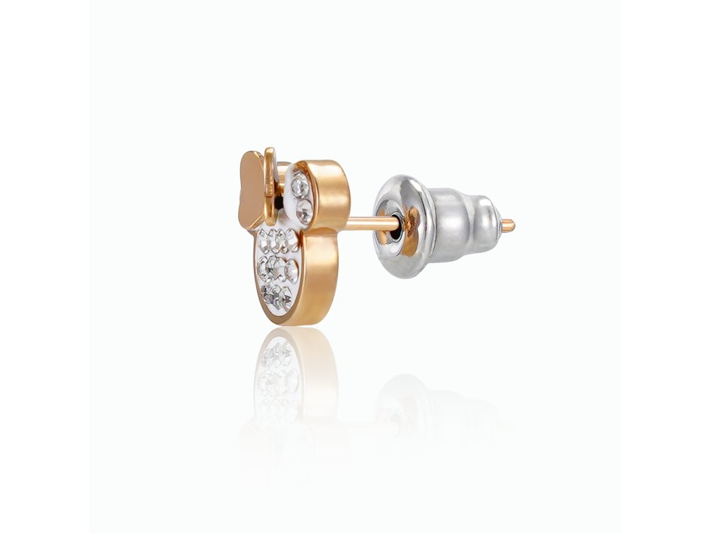 Náušnice majú jednoduchý tvar myšky Minnie a sú vyrobené z nehrdzavejúcej ocele, ktorá je pozlátená ružovým zlatom.Drobné číre kryštáliky z nich robia výnimočný kúsok, ktorý rozžiari každý outfit.
