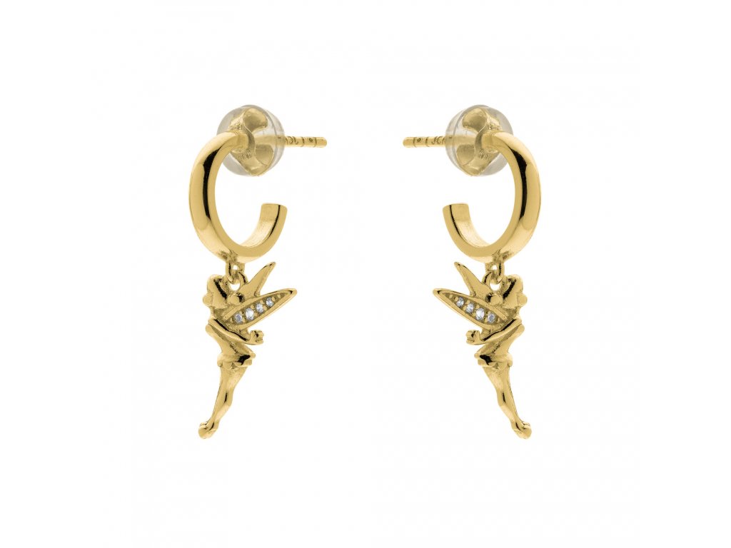 Okrúhlym náušniciam dominuje prívesok s obľúbenou vílou Zvonilkou z Disney. Šperk je vyrobený z kvalitného pozláteného striebra 925 s lesklým povrchom. Je zdobená čírymi kryštálmi na krídle víly. Zirkóny dodávajú šperkom ten správny lesk. Náušnice sa zapínajú na klasický gombík, ktorý zaručuje pohodlné nosenie a zabraňuje ich strate. Tieto detské náušnice sa dodávajú v štýlovej krabičke. Hmotnosť šperku je 1,9 g.