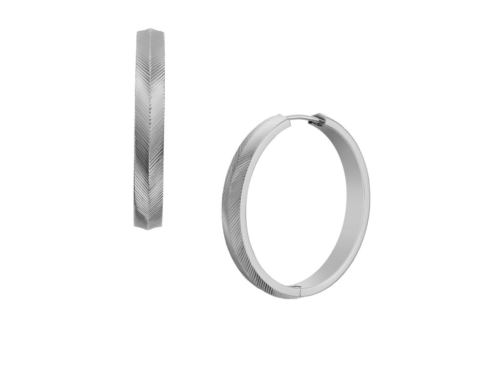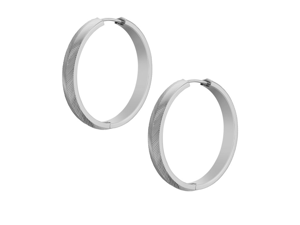 Náušnice sú vyrobené z kvalitnej nehrdzavejúcej ocele. Ich jemná lineárna štruktúra sa na svetle leskne.
