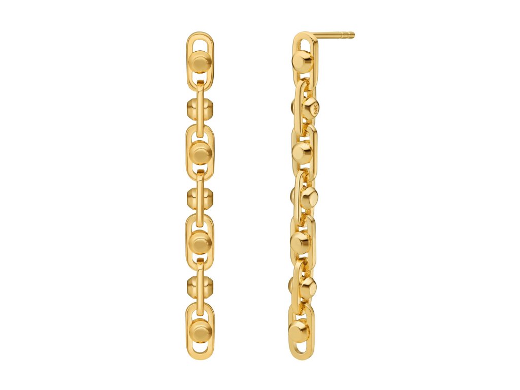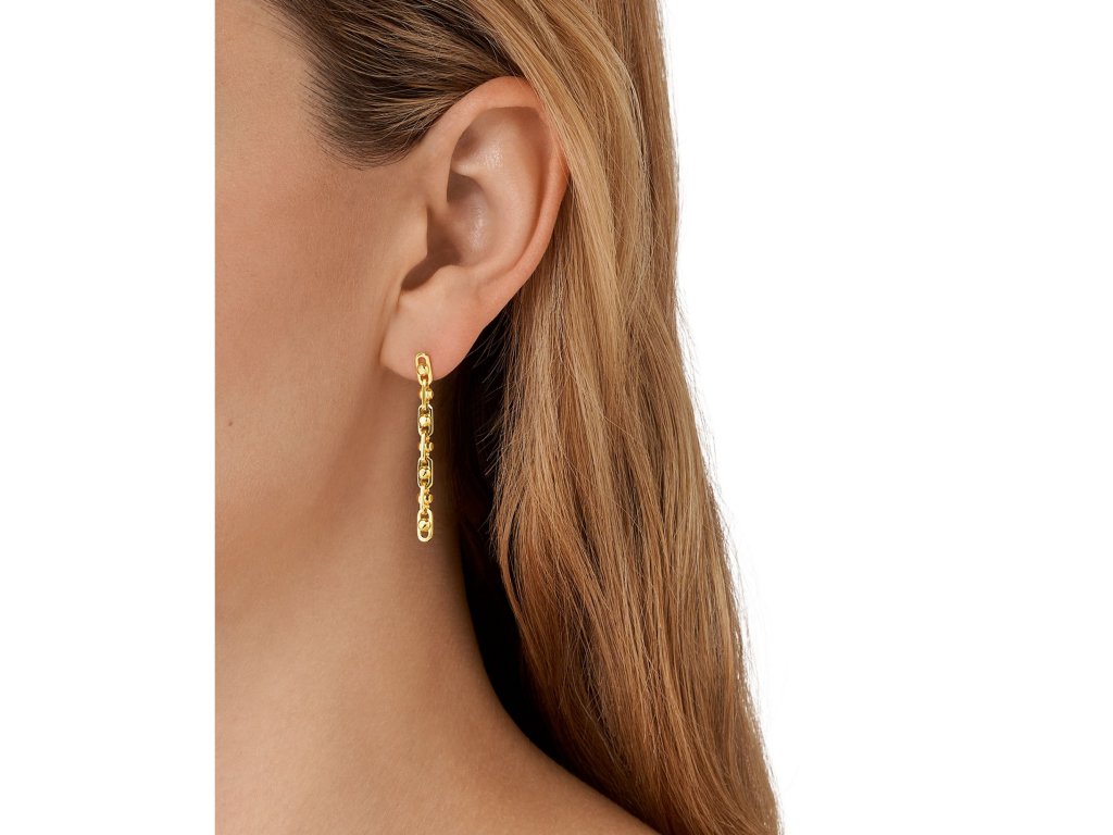Náušnice sú vyrobené zo striebra rýdzosti 925/1000 s pozlátenou povrchovou úpravou a majú dĺžku 4,2 cm. Vďaka puzetovému zapínaniu dobre držia na uchu a ľahko sa kombinujú s ostatnými šperkami v zlatom tóne. Hmotnosť šperku: 3,7 g.