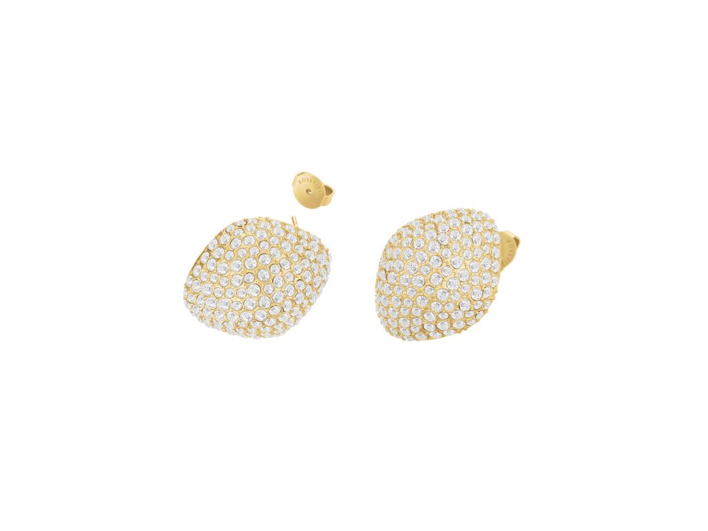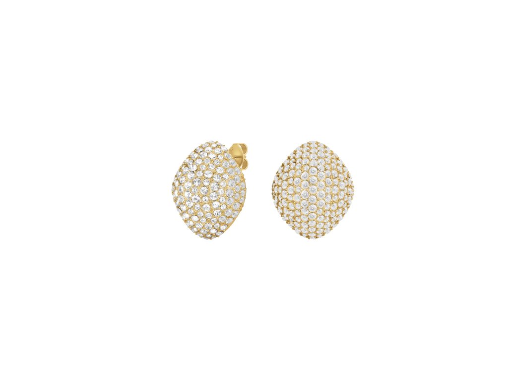 Veľké žiarivé dámske náušnice Rosefield Pave Studs s kryštálmi, vyrobené z pozlátenej nerezovej ocele.