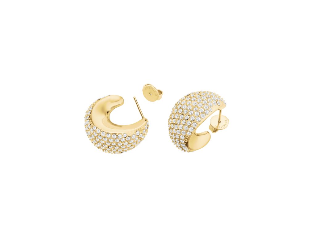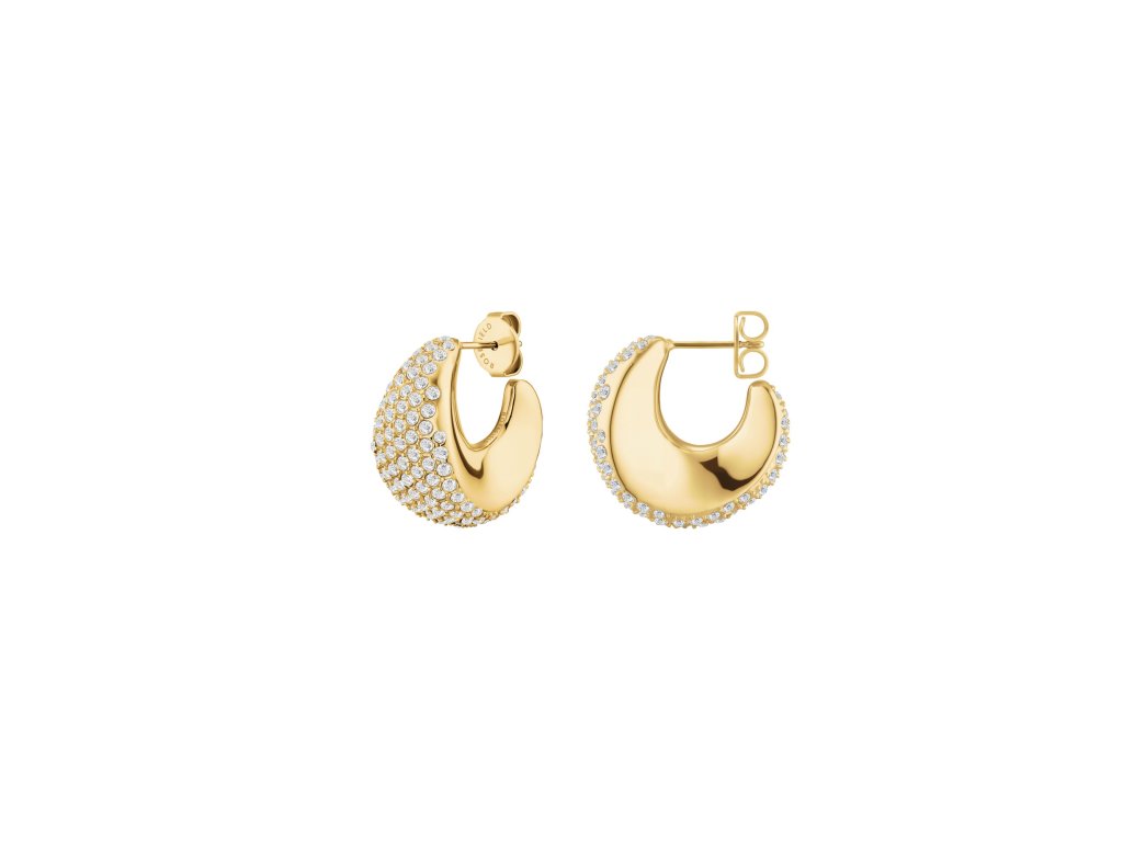 Kryštály zachytávajú svetlo z každého uhla a vytvárajú pôsobivú hru odleskov. Vďaka svojej veľkosti 2,2x1,2 cm náušnice vyniknú a upútajú pozornosť. Zapínanie na puzetu a kvalitná pozlátená nehrdzavejúca oceľ zaisťujú pohodlné nosenie od prvého prípitku až po posledný tanec.