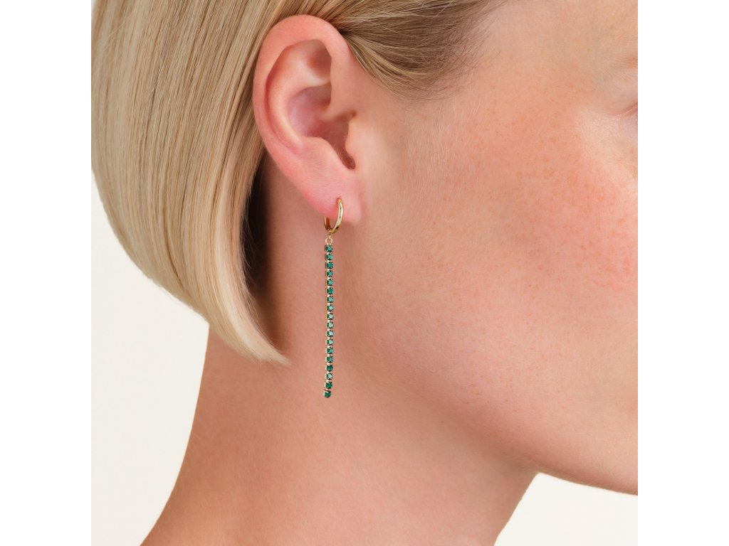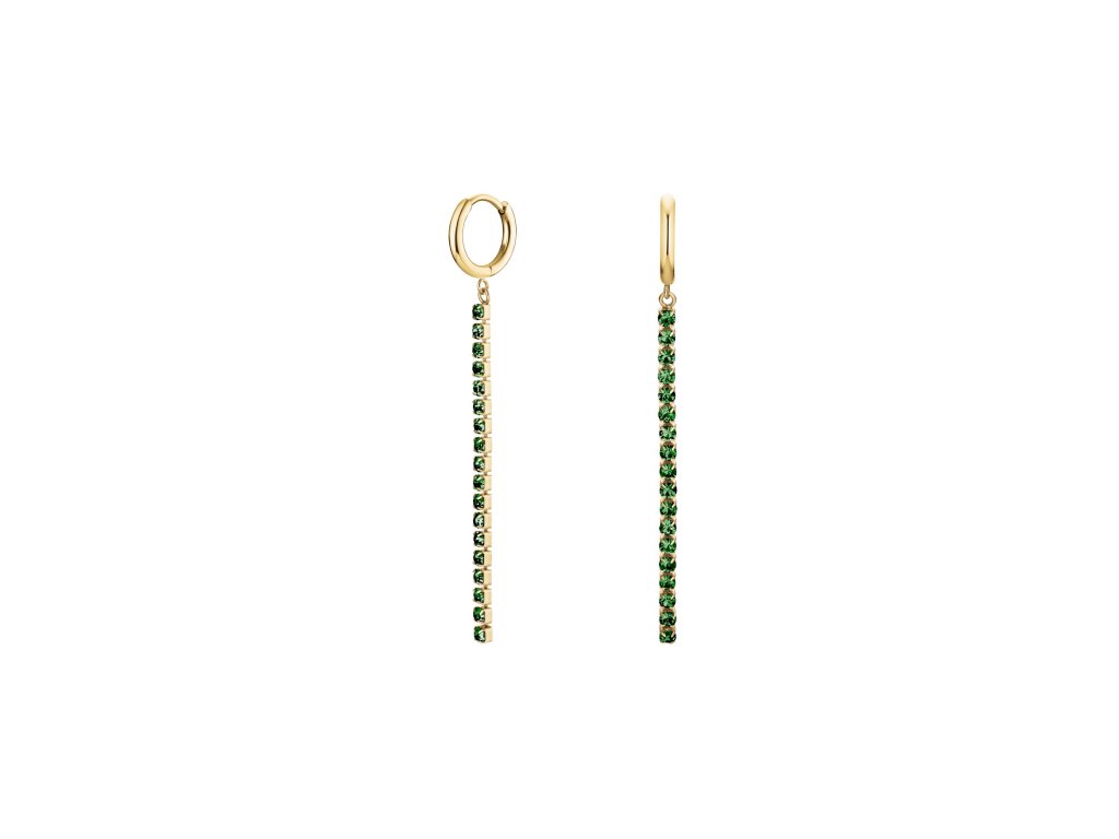 Náušnice vás očaria kombináciou prsteňa a tenkej línie, ktorá hladko lemuje tvár. Náušnice sú osadené 18 zelenými kryštálmi, ktoré sa pri každom vašom pohybe rozžiaria a dodajú vám sofistikovaný pôvab.
