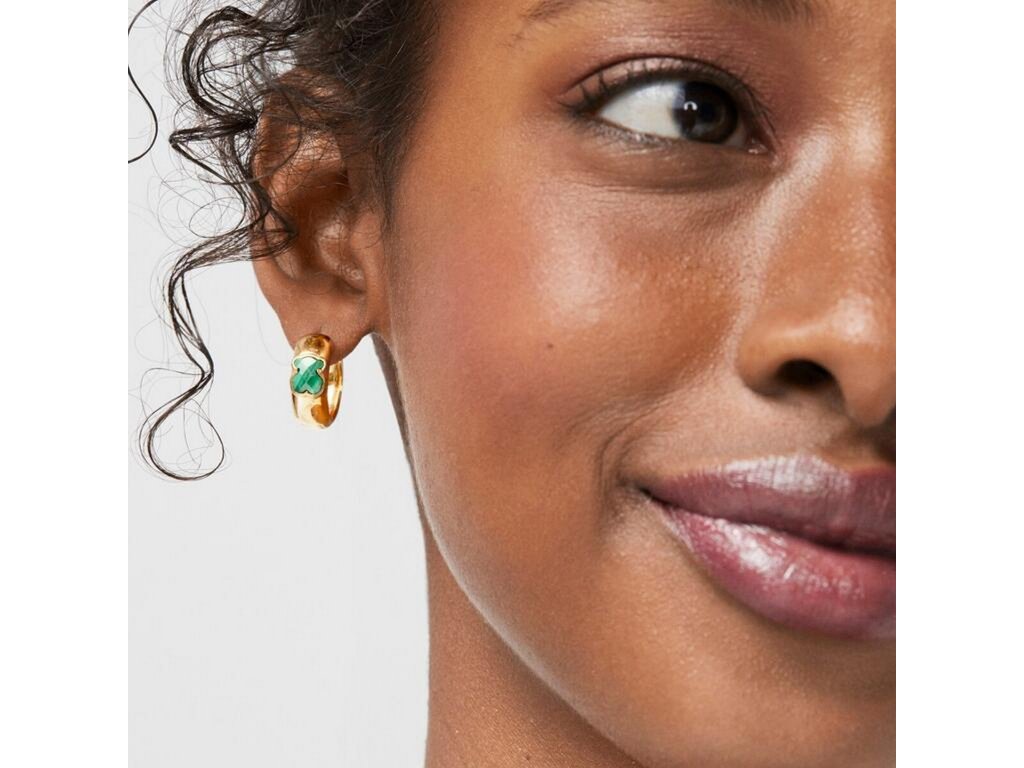 Kombinácia ikonického tvaru, sýtej farby a kruhového dizajnu vytvára šperk, ktorý si zamilujú ženy milujúce osobité, ale elegantné doplnky. Malachit priťahuje pohľady a medvedík dodáva náušniciam typický hravý podpis značky Tous.