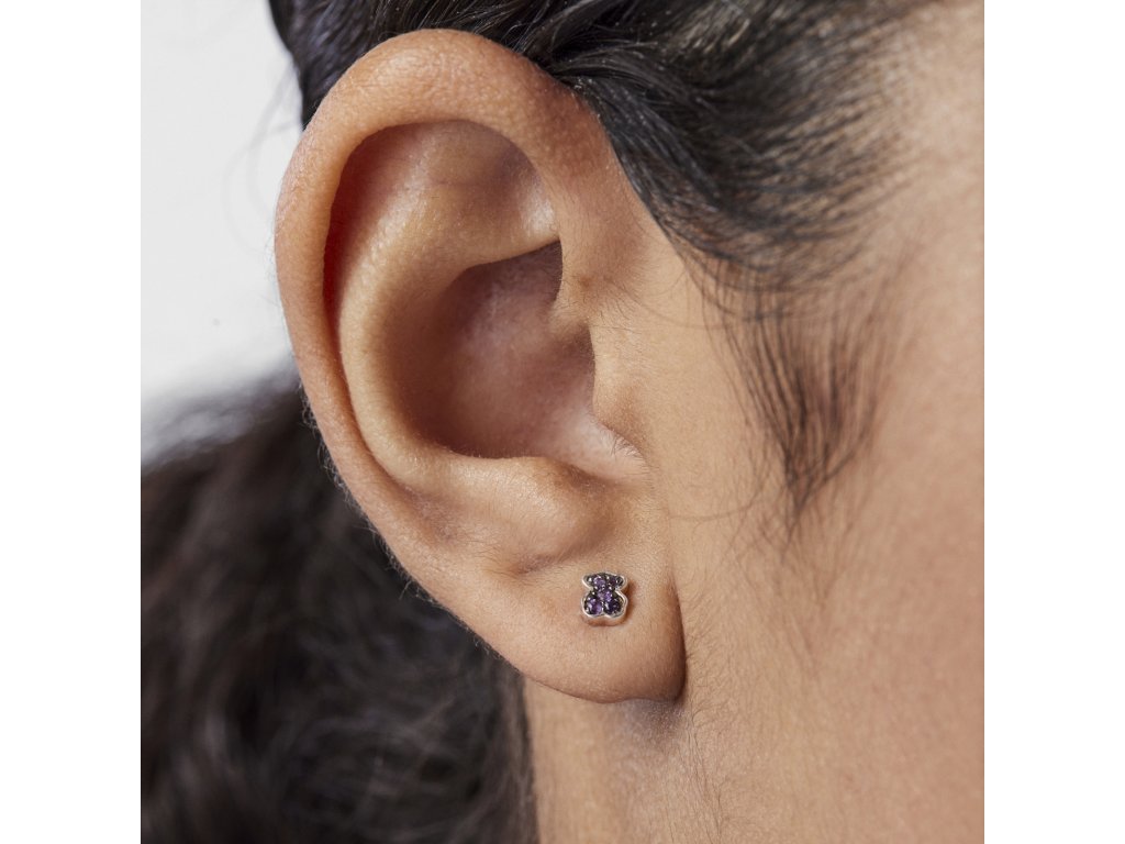 Náušnice TOUS Nový motív zo striebra 925 s motívom medvedíka z ametystov. Puzetka. Veľkosť: 4,6 × 3,8 mm.