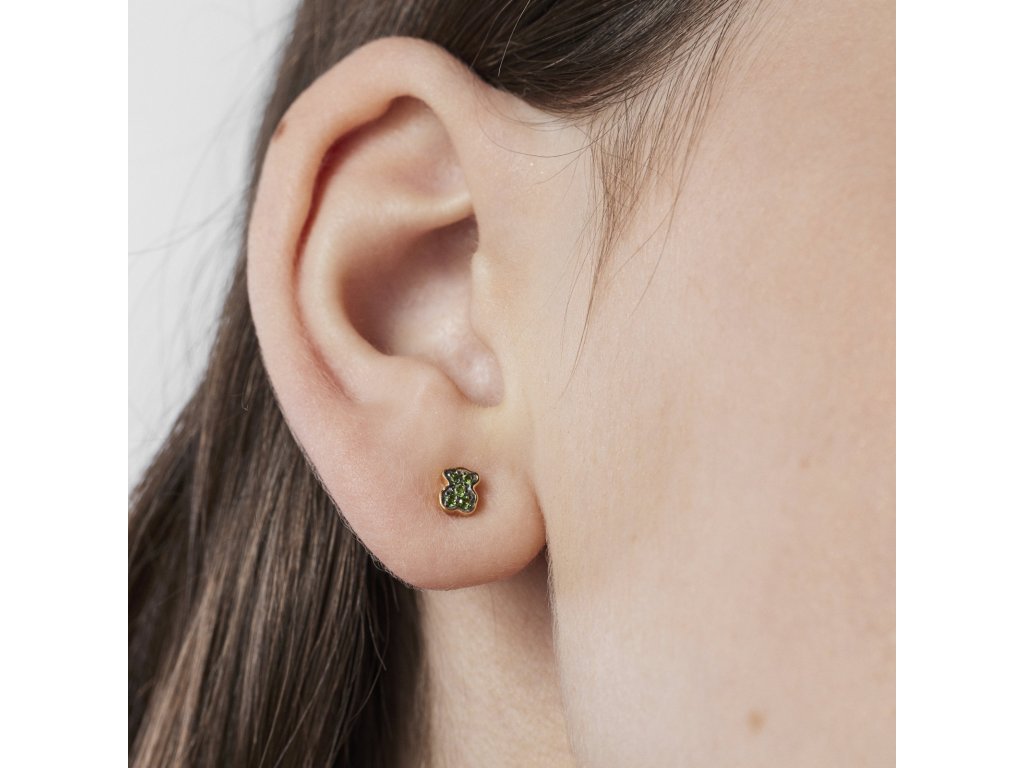 Náušnice TOUS New Motif z pozláteného striebra s motívom medveďa chromdiopsis. Puzetka. Veľkosť: 4,6 × 3,8 mm.Dodatočné parametre