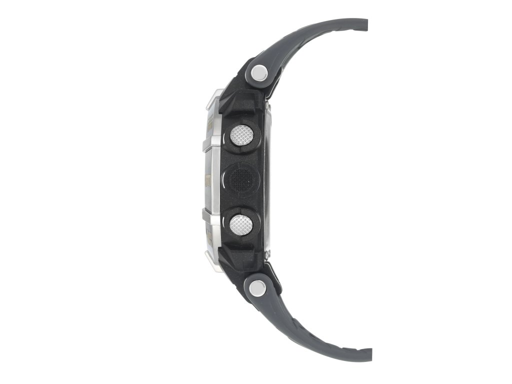 Športové digitálne hodinky s výraznou kombináciou čiernej a striebornej farby s červenými doplnkami.Dodatočné parametre