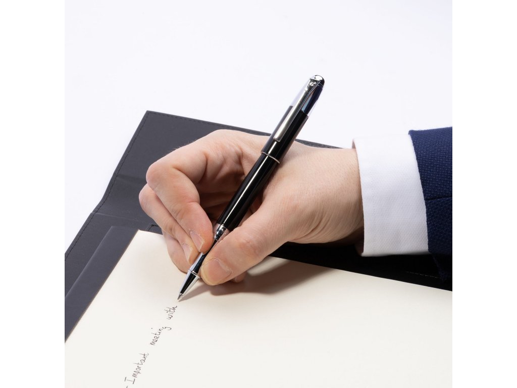 Silueta pera je štíhla, ľahko zúžená a perfektne vyvážená, vďaka čomu skvele padne do ruky a zaisťuje plynulý a presný pohyb po papieri. Rollerový mechanizmus potom ponúka príjemnú plynulosť písania s vizuálnym dojmom klasického plniaceho pera.