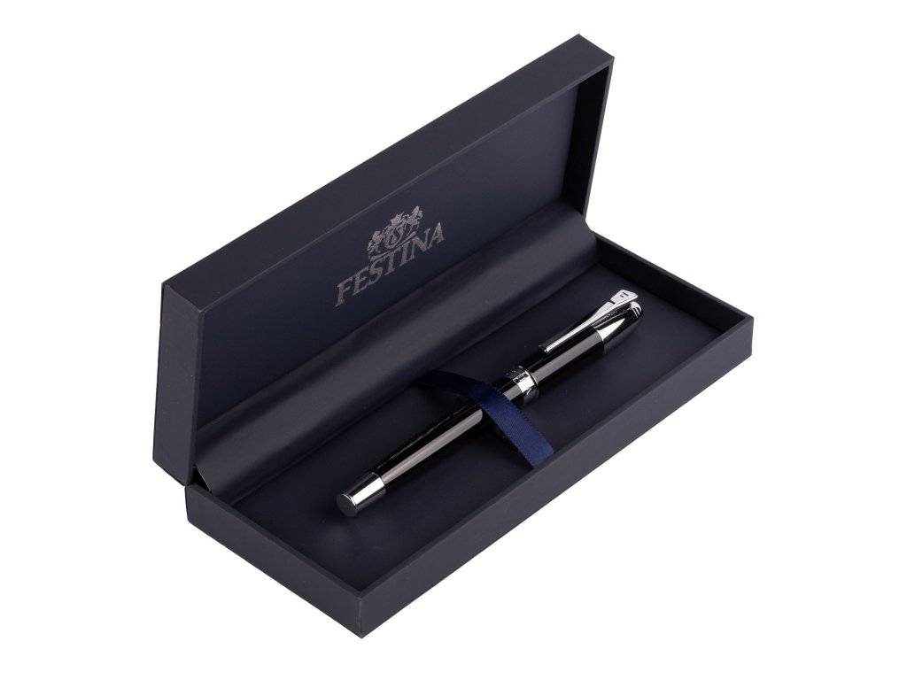 Klip v tvare písmena F a znak Festina na hornej časti odkazujú na charakteristický dizajnový rukopis značky a jemne prepájajú pero s jej hodinárskou tradíciou.