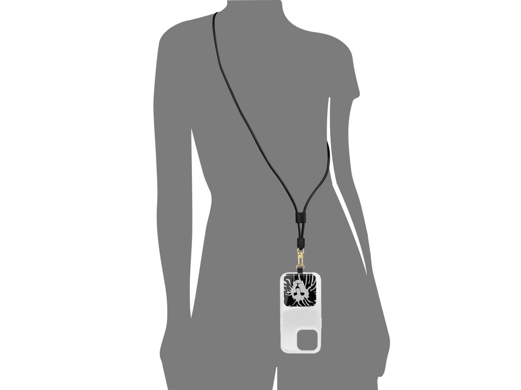 Je vyrobená z vegánskej kože s exkluzívnou saffiano textúrou, má nastaviteľnú dĺžku a k telefónu sa pripája pomocou pozlátenej kovovej karabínky s logom značky. Remienok je veľmi univerzálny doplnok, ktorý si môžete vziať na cesty, do mesta alebo na párty s priateľmi.