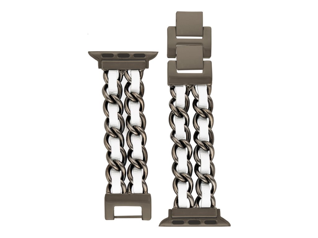Remienok kombinuje chladivosť ocele a jemnosť kože a je kombináciou tmavosivej a bielej farby. Remienok robí z hodiniek Apple Watch netradičný doplnok, ktorý upúta pozornosť.